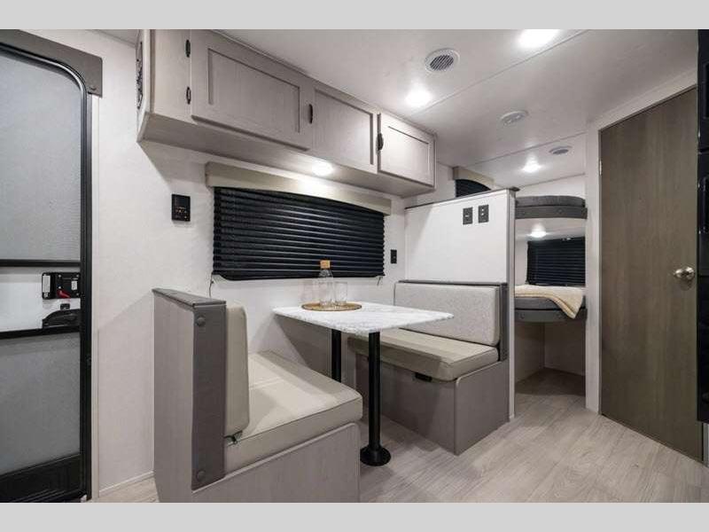 Each model is constructed with a BAL NXG frame for durability, and a smooth metal front for better fuel efficiency while towing. There are magnetic baggage door latches outside, along with a power awning with an LED light strip and adjustable legs, an outside shower with hot and cold water, and many more conveniences!