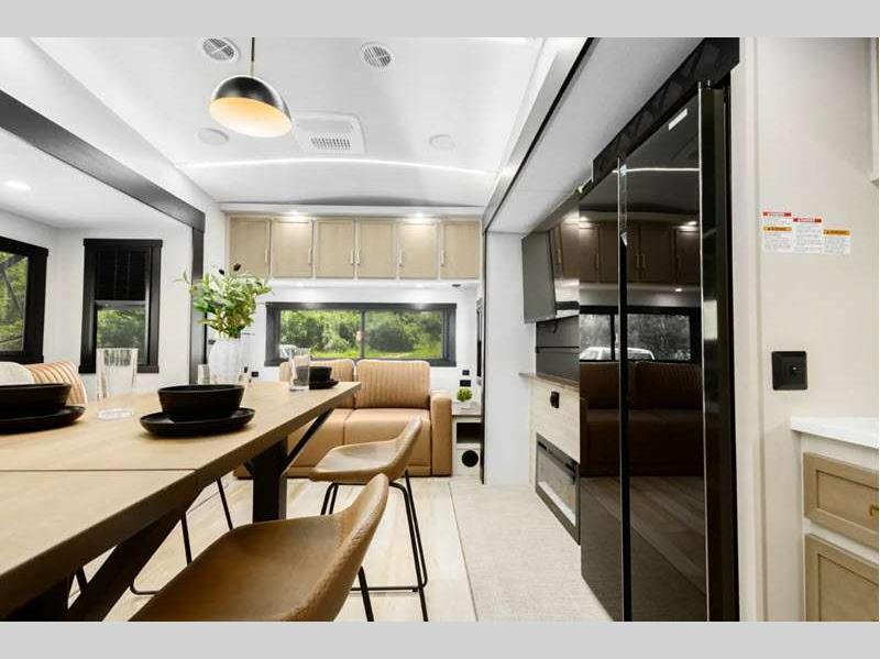 Sleeps 8 Slides 5 Length 43 ft 6 in Ext Width 8 ft Ext Height 13 ft 6 in Hitch Weight 2140 lbs Dry Weight 11589 lbs Cargo Capacity 2551 lbs Fresh Water Capacity 57 gals Grey Water Capacity 62 gals Black Water Capacity 30 gals Available Beds King Refrigerator Type 12V Refrigerator Size 16 cu ft Cooktop Burners 3 Number of Awnings 1 Water Heater Type On Demand Tankless AC BTU 33000 btu TV Info LR 50" LED Smart TV Awning Info 20' with LED Lights Axle Count 2 Washer/Dryer Available Yes Shower Type Standard Electrical Service 50 amp Similar Floorplans