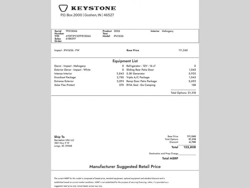 Recreation USA is not responsible for any misprints, typos, or errors found in our website pages. Any price listed excludes sales tax, registration tags, and delivery fees. Manufacturer pictures, specifications, and features may be used in place of actual units on our lot. Please contact us @843-215-1800 for availability as our inventory changes rapidly. All calculated payments are an estimate only and do not constitute a commitment that financing or a specific interest rate or term is available.